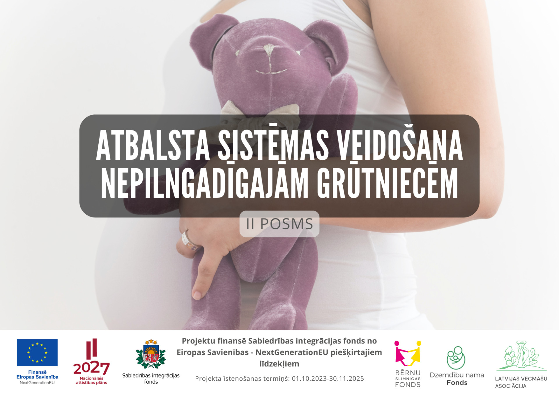 *Projektu “Mazaizsargātas sabiedrības grupas – nepilngadīgu grūtnieču interešu aizstāvība, veidojot valsts atbalsta sistēmu, II posms” finansē Sabiedrības integrācijas fonds no Eiropas Savienības – NextGenerationEU piešķirtajiem līdzekļiem. Par sagatavoto materiālu saturu atbild Bērnu slimnīcas fonds.