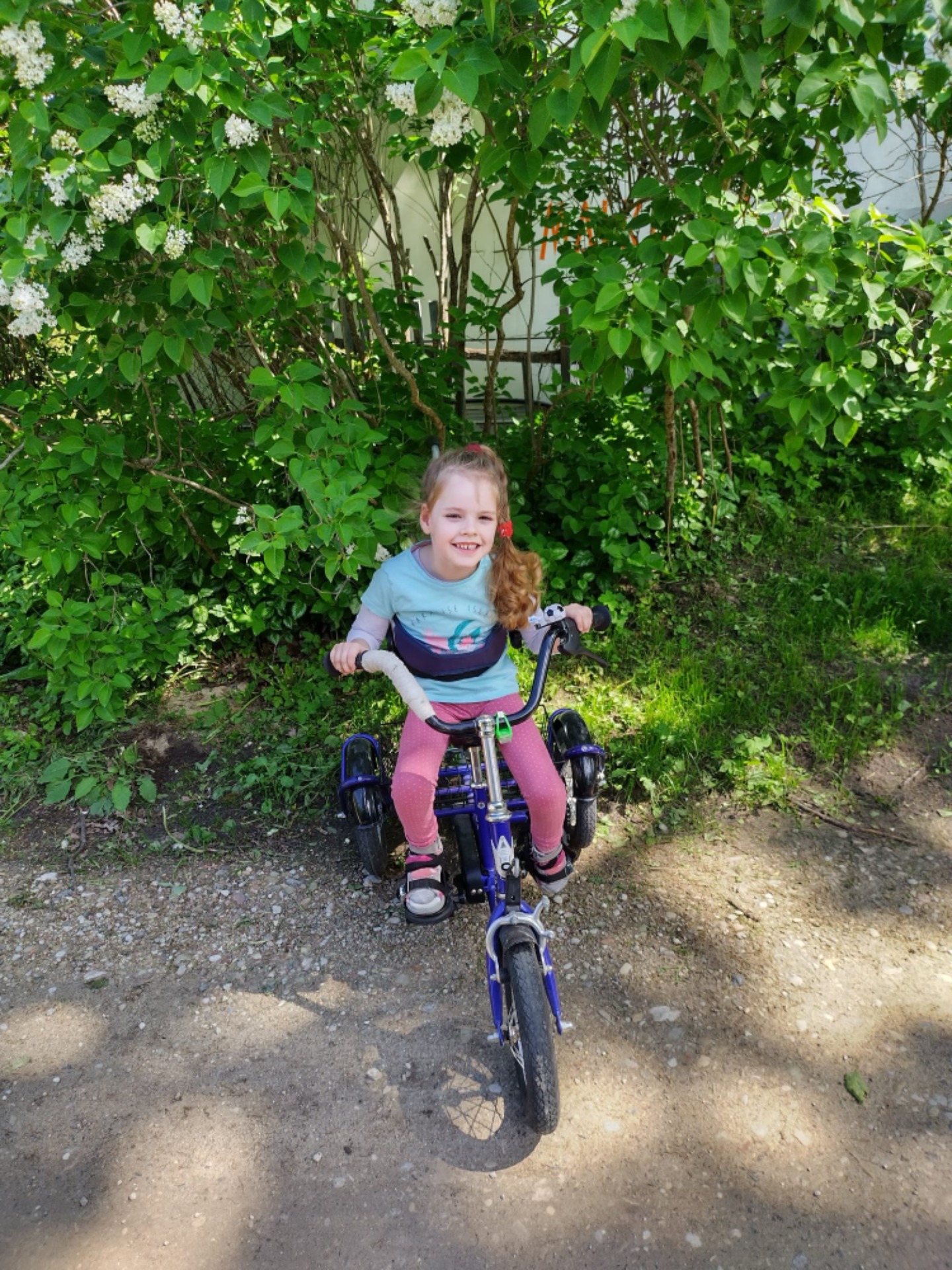 "Neskatoties uz to, Betija ir smaidīga, komunikabla meitene, ar prieku apmeklē skolu, kur mācās 2. klasē," stāsta Betijas mamma. Meitenei prieku sagādā izbraucieni ar speciāli pielāgotu velosipēdu. Viņa ir labi apguvusi velosipēda vadīšanu, iemācījusies manevrēt un apgriezties, lai gan sākumā bijis grūti savienot stūres stūrēšanu ar pedāļu mīšanu.