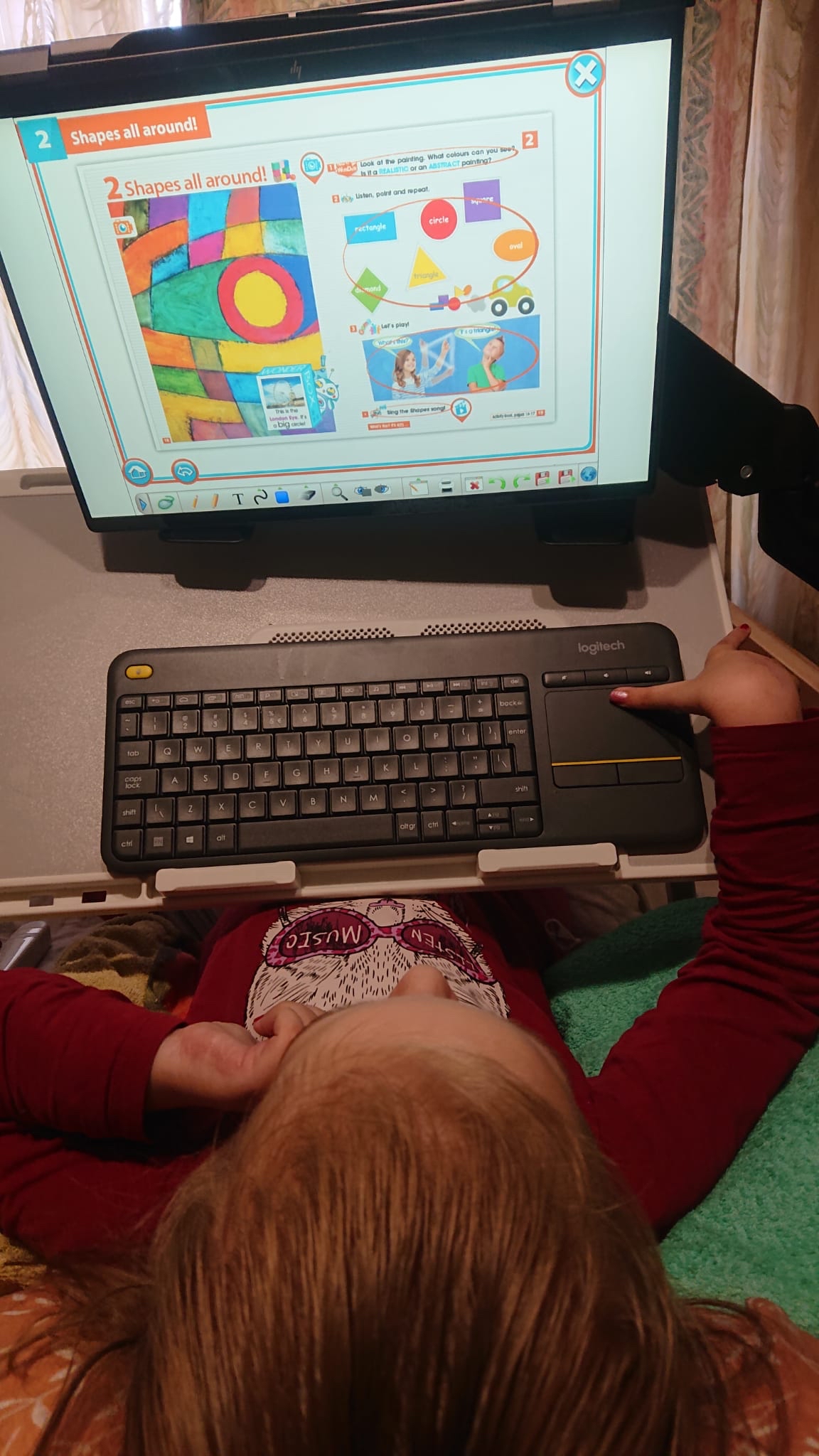 Datorstūrītis, kas piemērots mācībām guļus