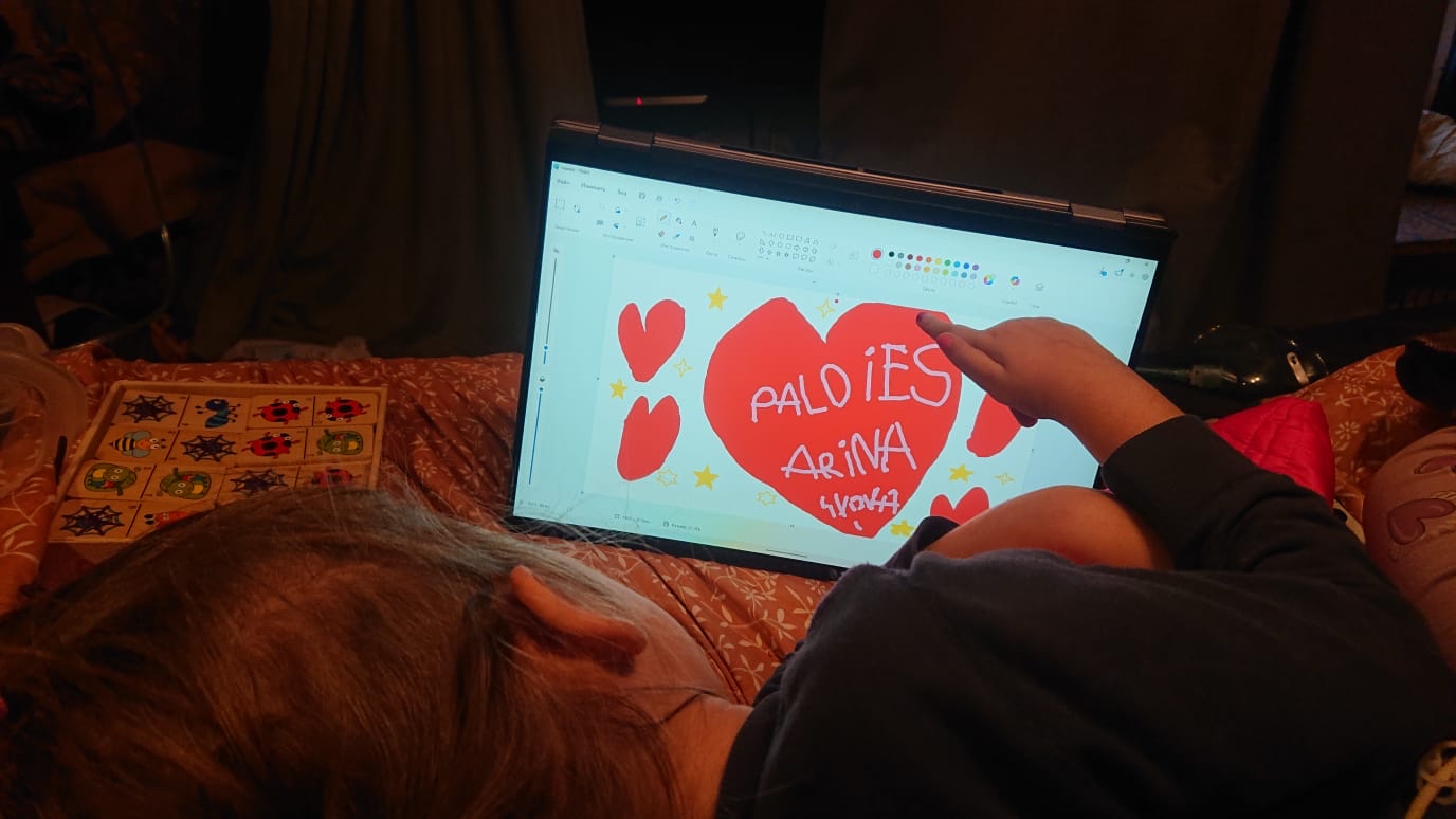 Pēc konsultācijas ar speciālistiem ģimene ir atradusi risinājumu – piemērots portatīvais dators ar skārienjūtīgu ekrānu, bezvadu klaviatūra un speciāli stiprinājumi, kas ļautu datoru novietot virs gultas, radot Arinai pielāgotu un drošu mācību vidi. Tā būtu vieta, kur viņa varētu ne tikai mācīties, bet arī zīmēt, veidot, izpausties un attīstīties, nezaudējot saikni ar skolu un pasauli.