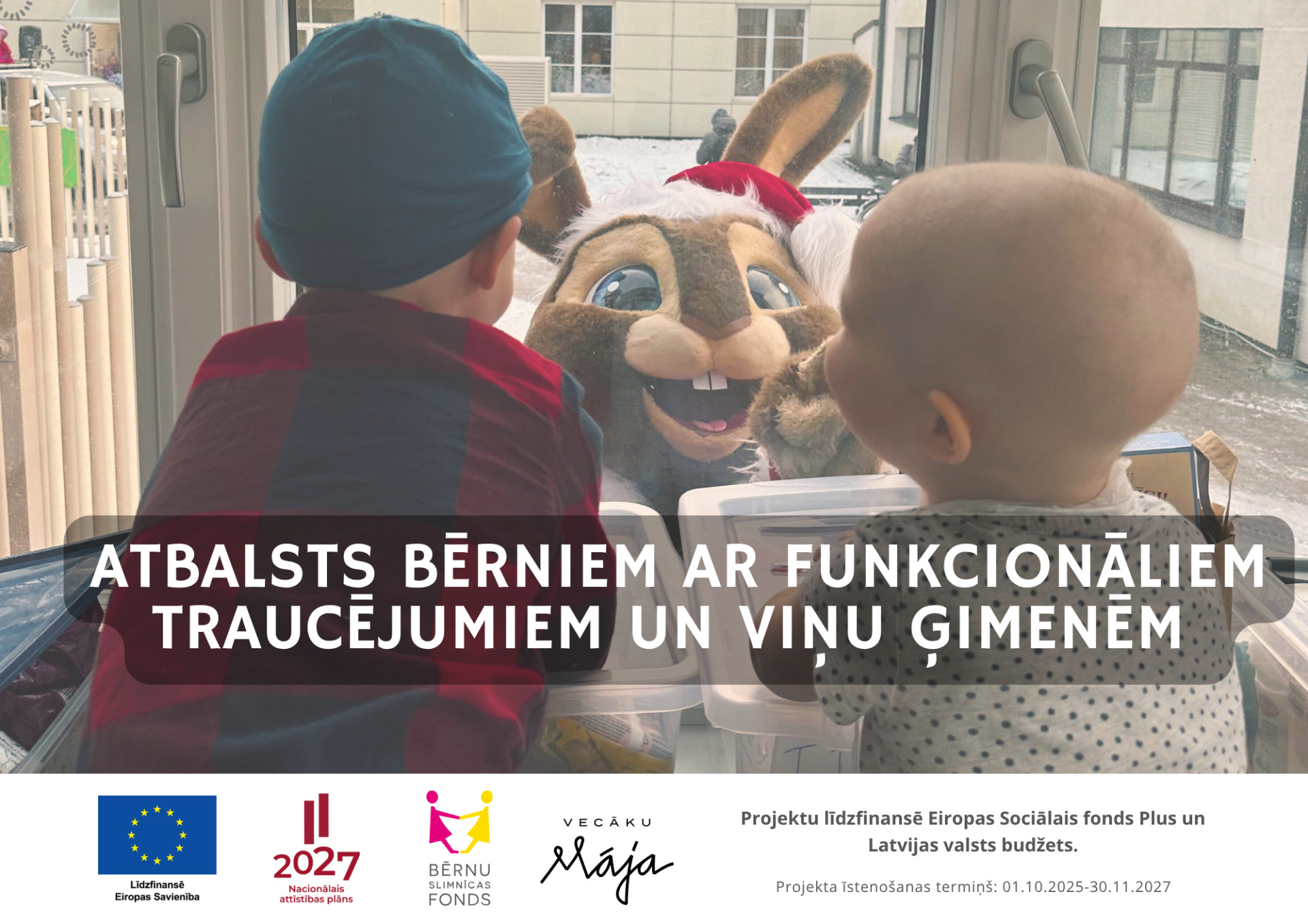 2025. gada 1. oktobrī Bērnu slimnīcas fonda Vecāku māja uzsāka jaunu Eiropas Sociālā fonda Plus līdzfinansētu projektu Nr. 4.3.5.1/4/25/A/021 “Ceļš uz priekšu – atbalsts bērniem ar funkcionāliem traucējumiem un viņu ģimenēm”, lai sniegtu multidisciplināru un holistisku atbalstu bērniem ar funkcionāliem traucējumiem (turpmāk - FT) un viņu aprūpētājiem